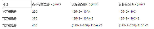 對于雙瓦楞紙板,最小綜合定量=面紙+中紙+里紙的定量之和。